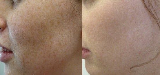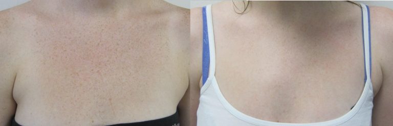 - Pigmented lesions: For the treatment of age spots, freckles, flat pigmented birthmarks and other skin discolouration problems such as melasma/chloasma, and erythromelanosis of the neck (poikiloderma of Civatte). Light pulses targeted at the melanin in the skin’s surface heat and destroy melanin to remove the discolouration.